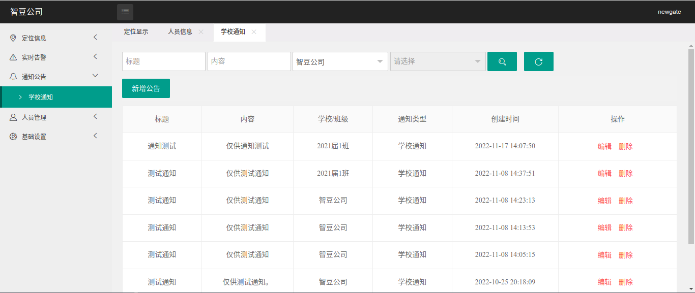 2.校办端:可以查看教职工考勤信息、发送学校各类通知给家长等。